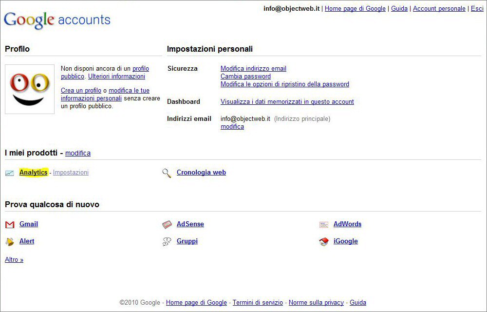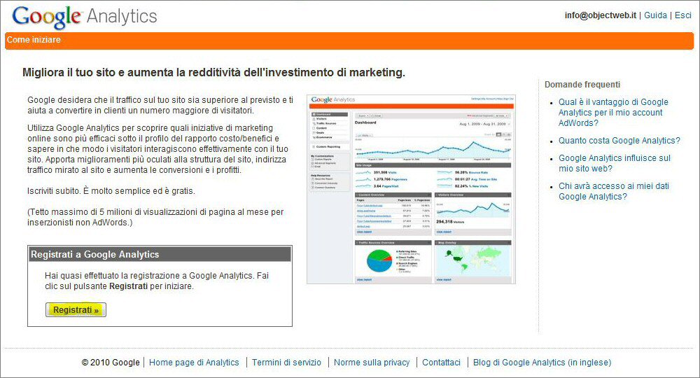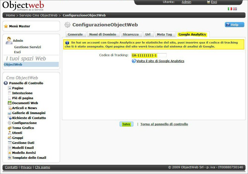 La soluzione proposta permette di integrare in modo semplice nel tuo sito su ObjectWeb il potente motore di statistiche di Google Analytics.